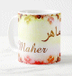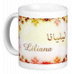 Mug avec le prénom "Charafeddine" écrit en français, en arabe (شرف الدين) et calligraphié de façon artistique en arabe sur la partie droite.