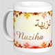Mug avec le prénom "Nesma" écrit en français, en arabe (نسمة) et calligraphié de façon artistique en arabe sur la partie droite.