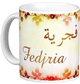 Mug avec le prénom "Abdennour" écrit en français, en arabe (عبد النور) et calligraphié de façon artistique en arabe sur la partie droite.