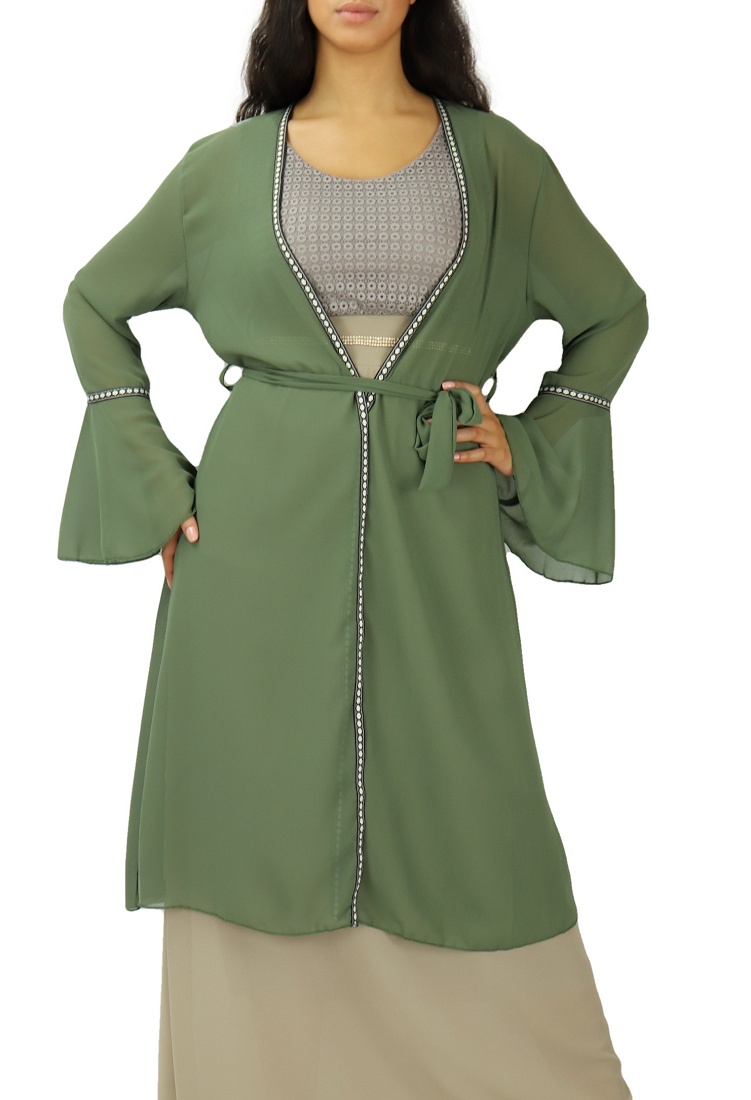 Kimono mi-long, matière fluide ultra léger, avec manches cloches, le tout accompagné d'une ceinture à nouer sous passants à la taille. Une fine broderie sur le long et les manches, Ce kimono est la pièce parfaite pour ajouter une touche bohème à tous vos looks!