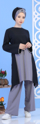 Ensemble Pantalon + Tunique mi longue imprimée avec un style tropical, col rond, manches longues, tissu crêpe fluide. Pantalon large coupe droite, Cet ensemble s’apprête à diverses occasions aussi bien festives que quotidiennes.