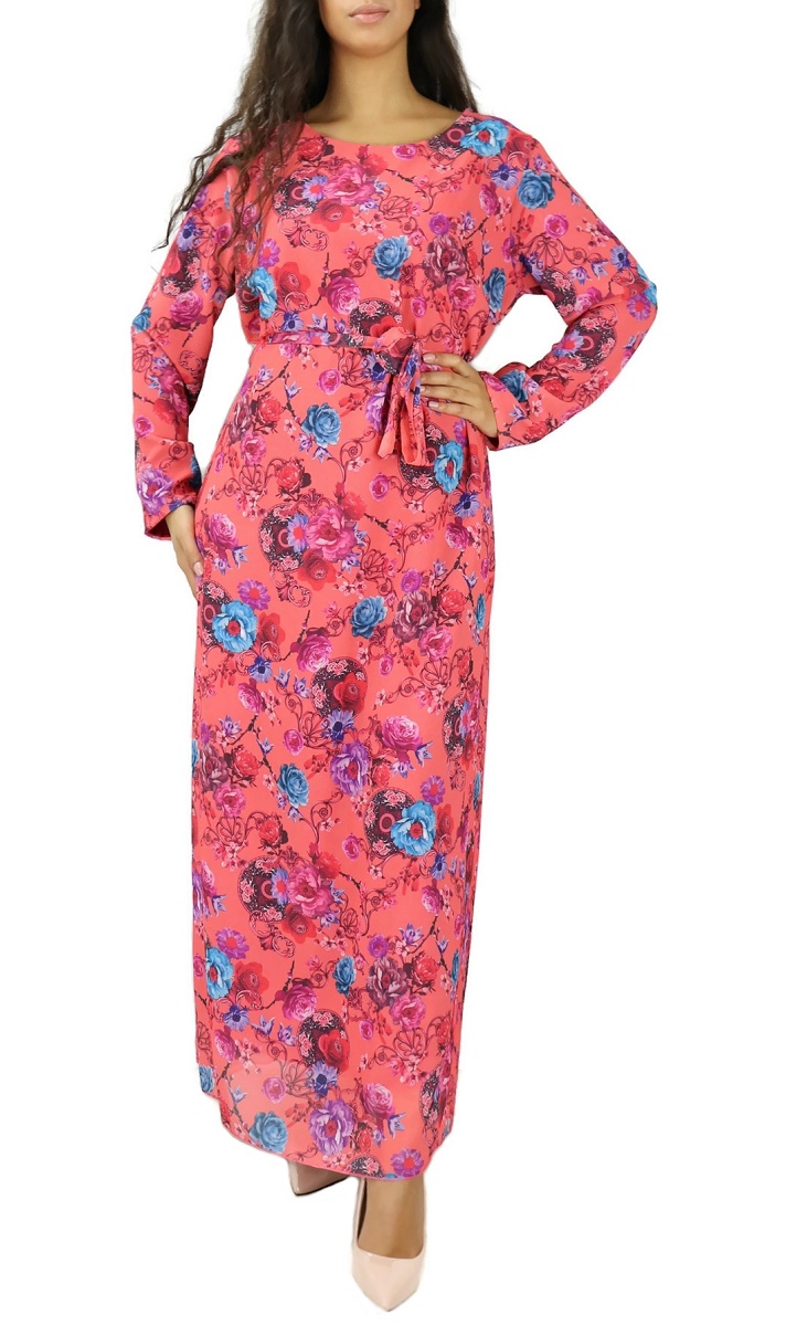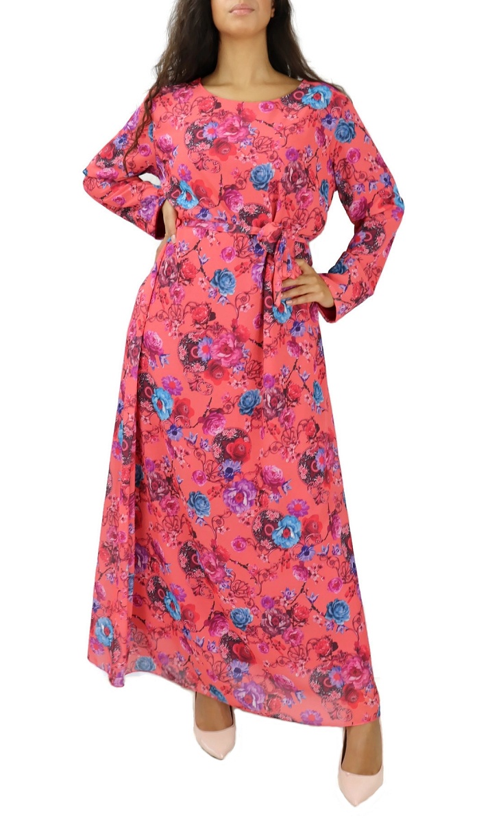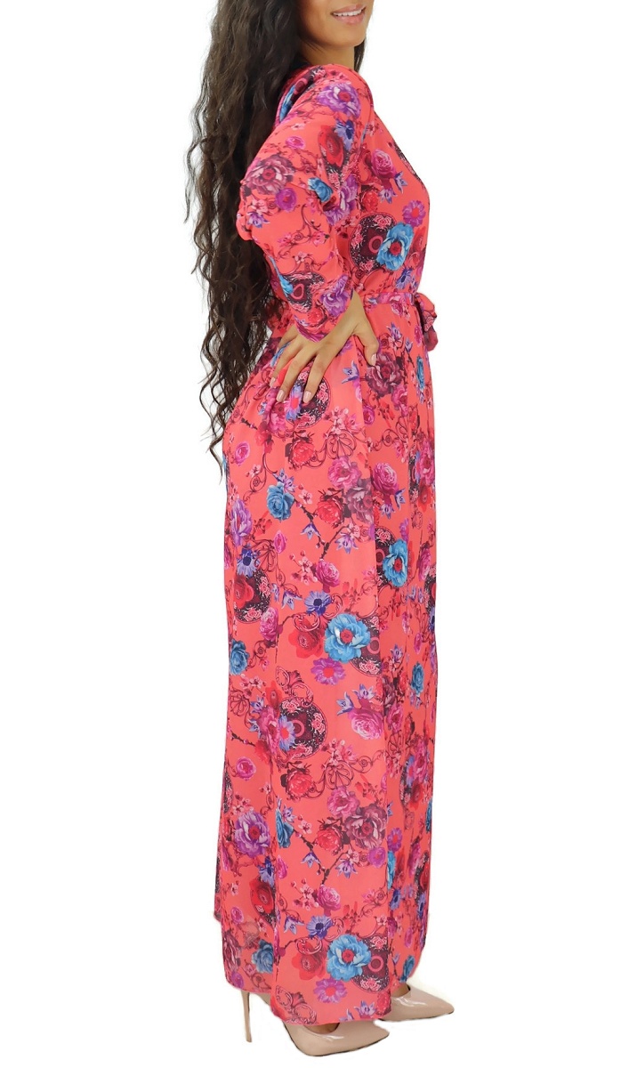 Robe longue à imprimé floral pour femme - Couleur Corail Vetement & Accessoire
