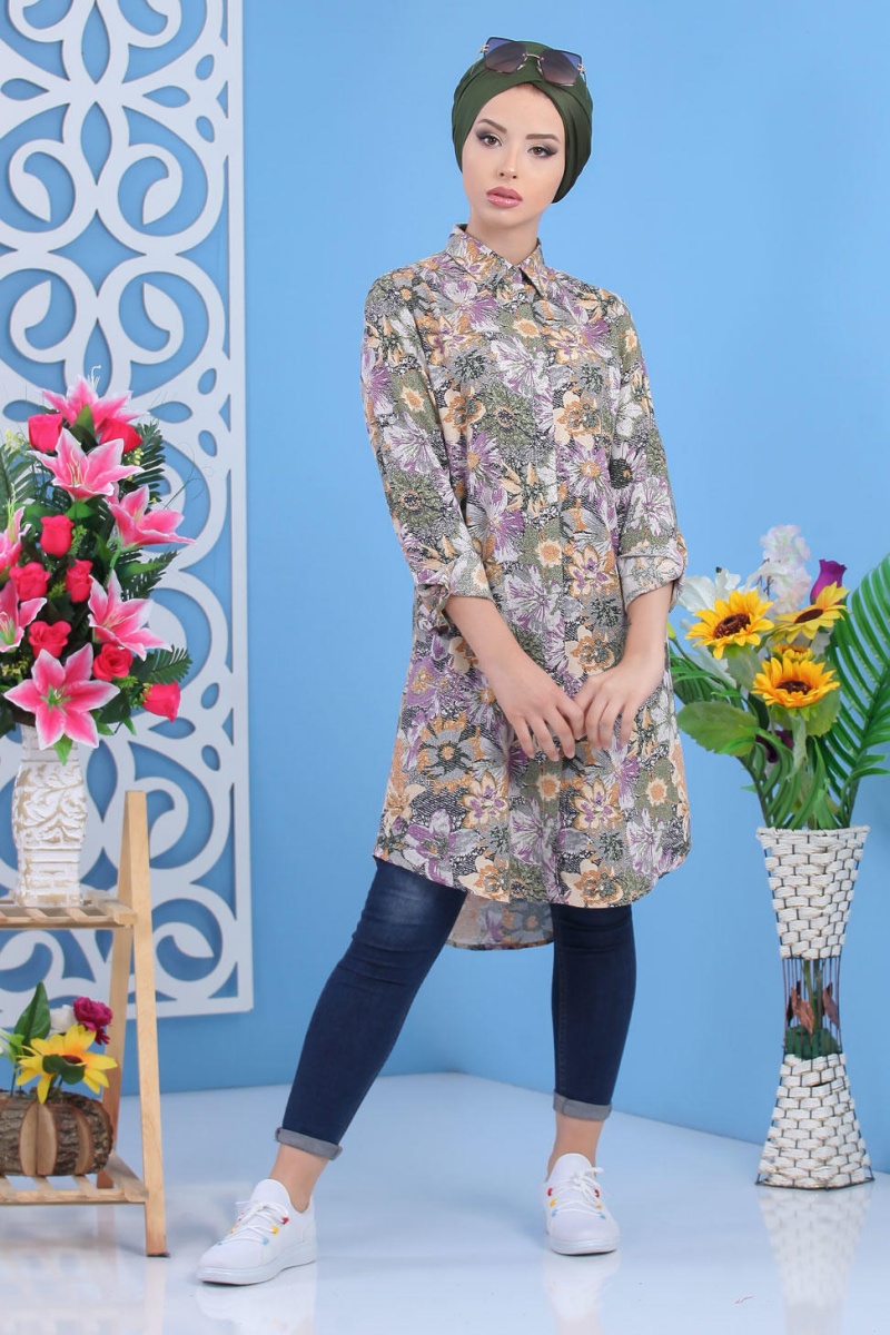 Chemise longue, col chemise, manches finition boutons aux poignets, coupe droite, extrémités arrondies, tissu fluide. Ce modèle reste un basique et indémodable qui se porte en toute saison et diverses occasions.