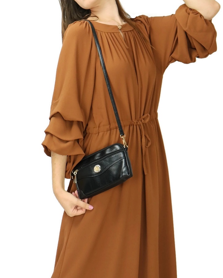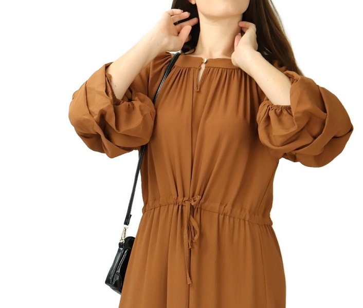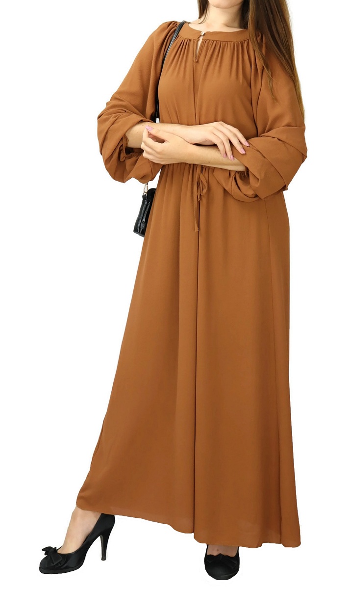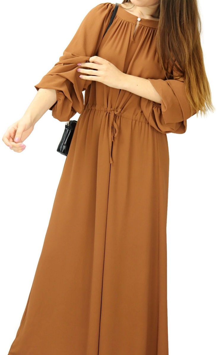 Robe longue evasee a manches bouffantes style boheme chic - Couleur Marron