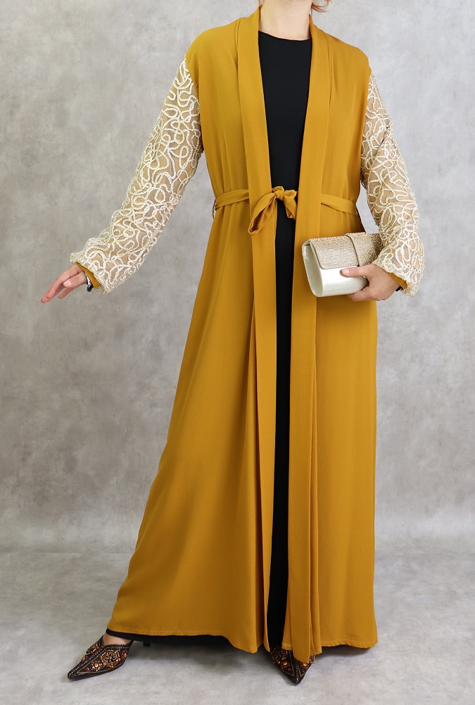 Kimono aux manches brodées - Couleur jaune moutarde Vetement & Accessoire
