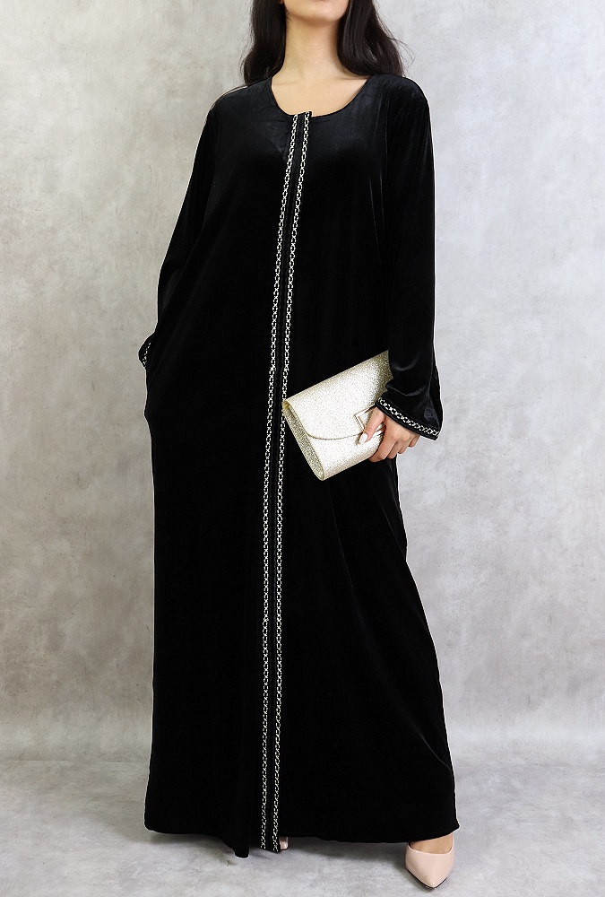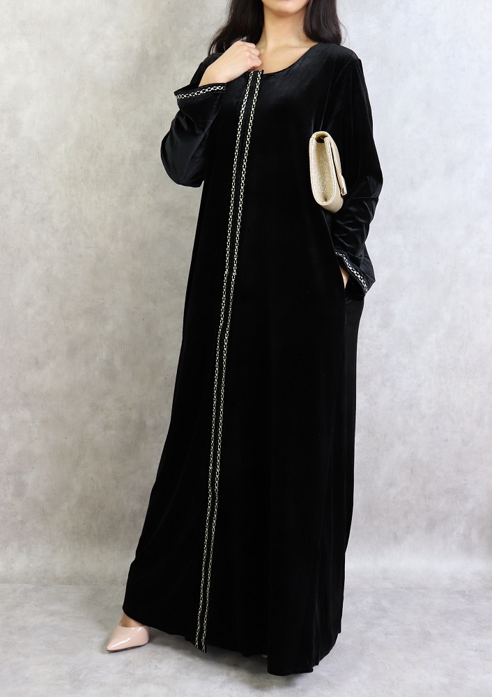 Confectionnée dans un style chic et classique, cette robe longue en velours saura vous satisfaire avec ses broderies fines.