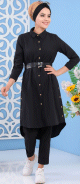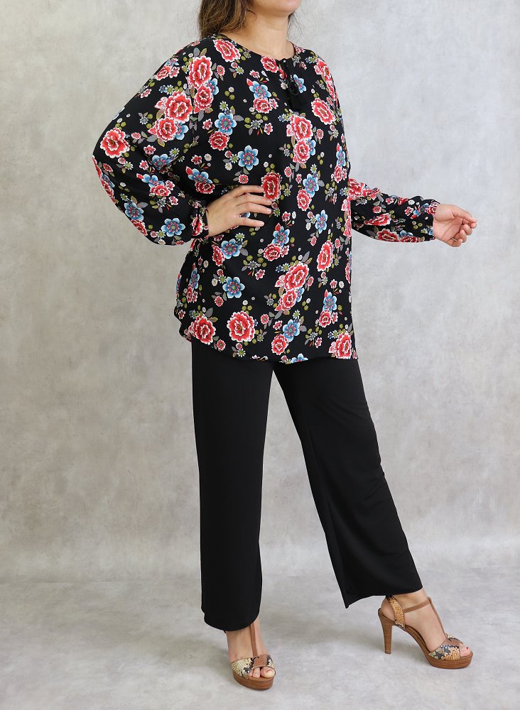 Tunique courte, col dégagé, lien de serrage, manches longues finition élastiques aux poignets. Coupe droite, tissu fluide et léger.