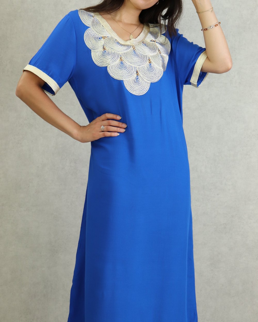 Robe orientale manches courtes avec de jolies broderies traditionnelles japonaises et perles dorées.