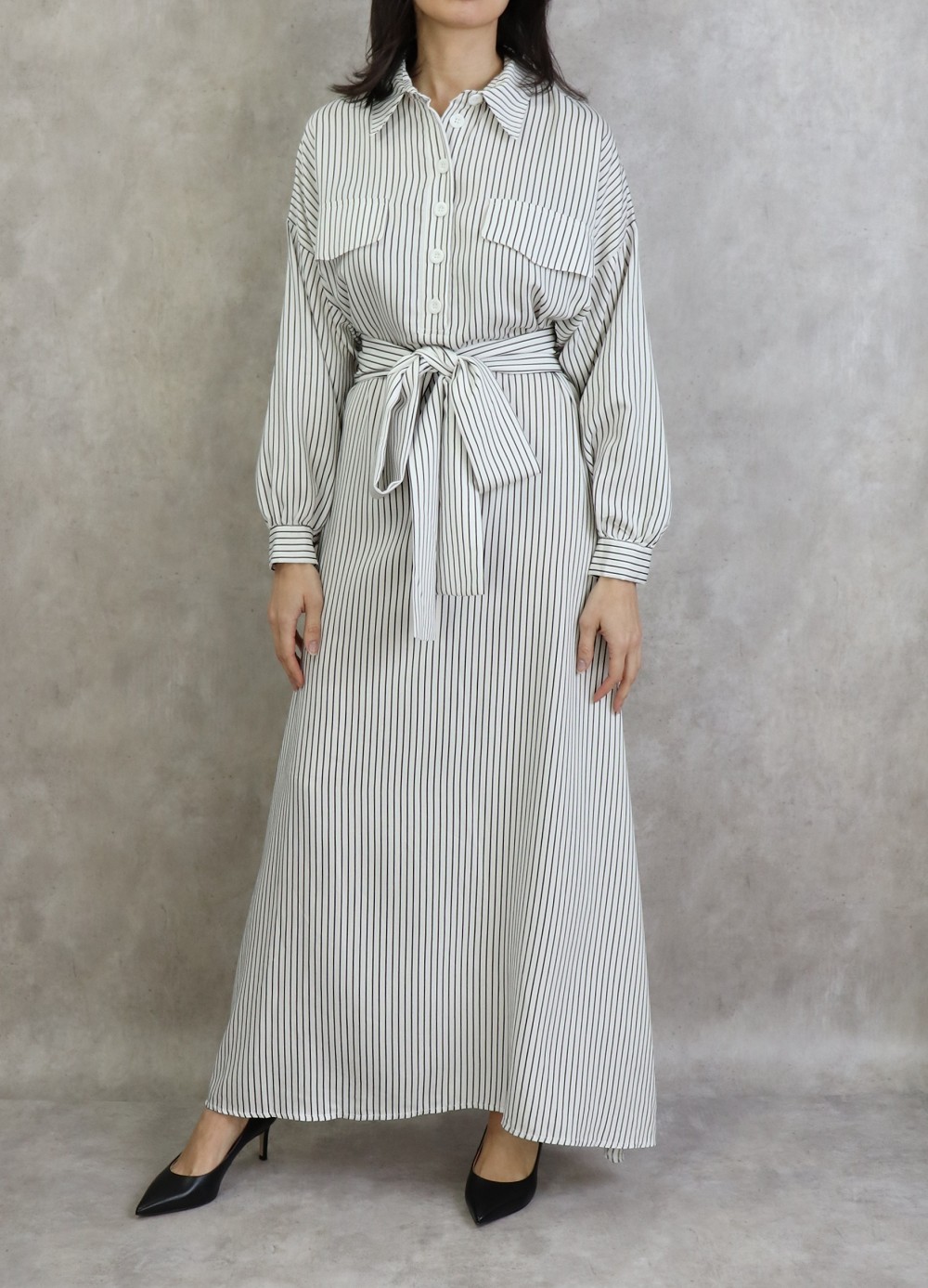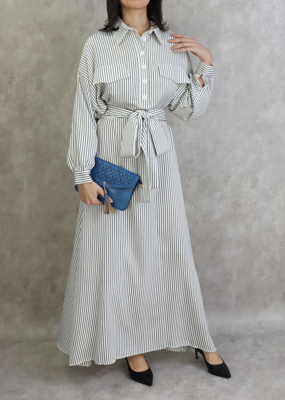 Robe féminine blanche à rayures noires Vetement & Accessoire