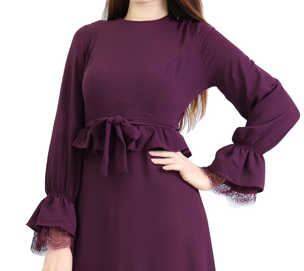 Robe longue evasee fluide et chic a volants pour femme - Couleur Aubergine