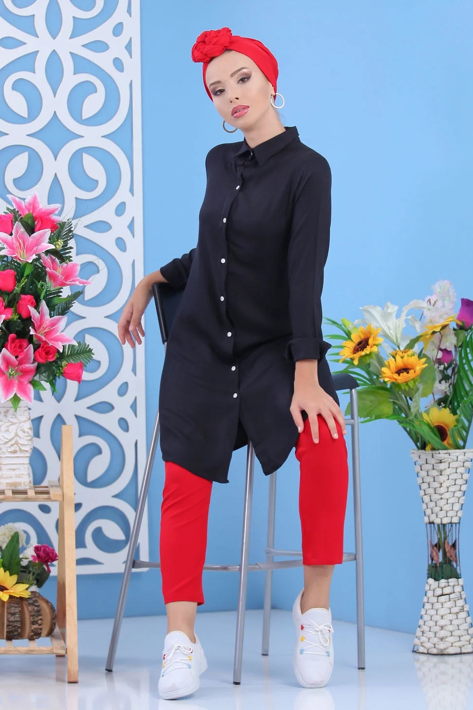 Chemise longue, col chemise, manches finition boutons aux poignets, coupe légèrement évasée, extrémités arrondies. Ce modèle reste un basique et indémodable qui se porte en toute saison et diverses occasions.