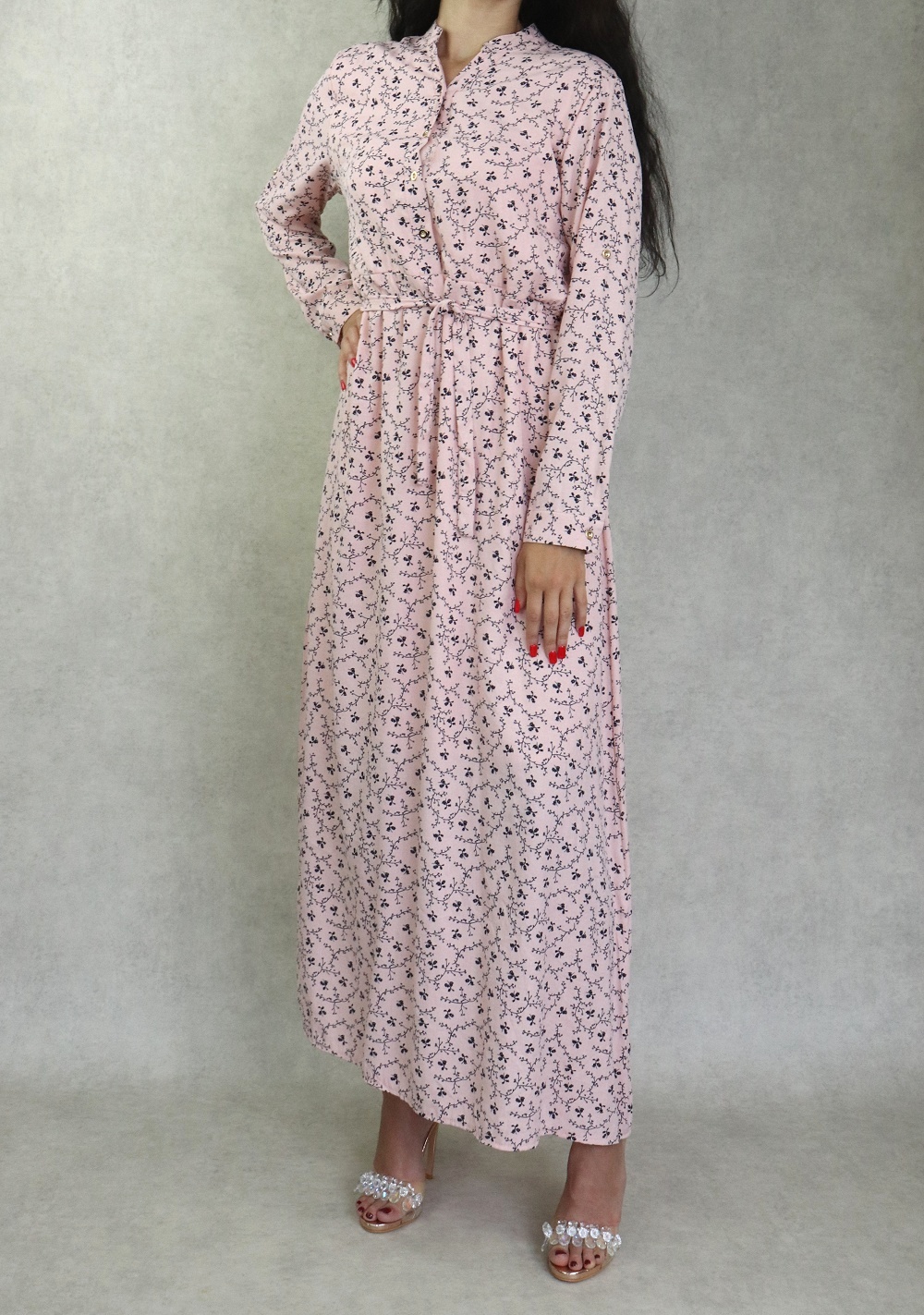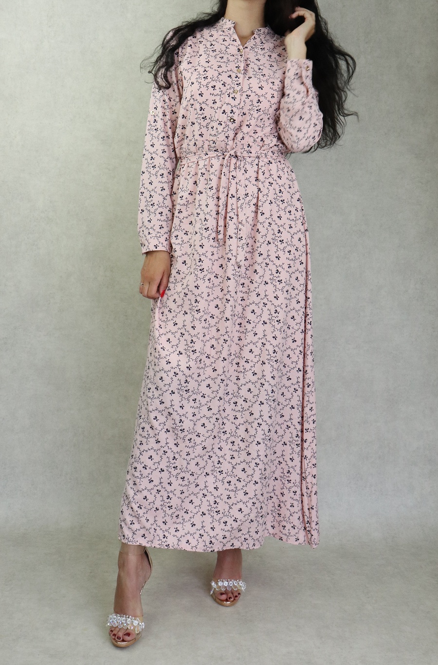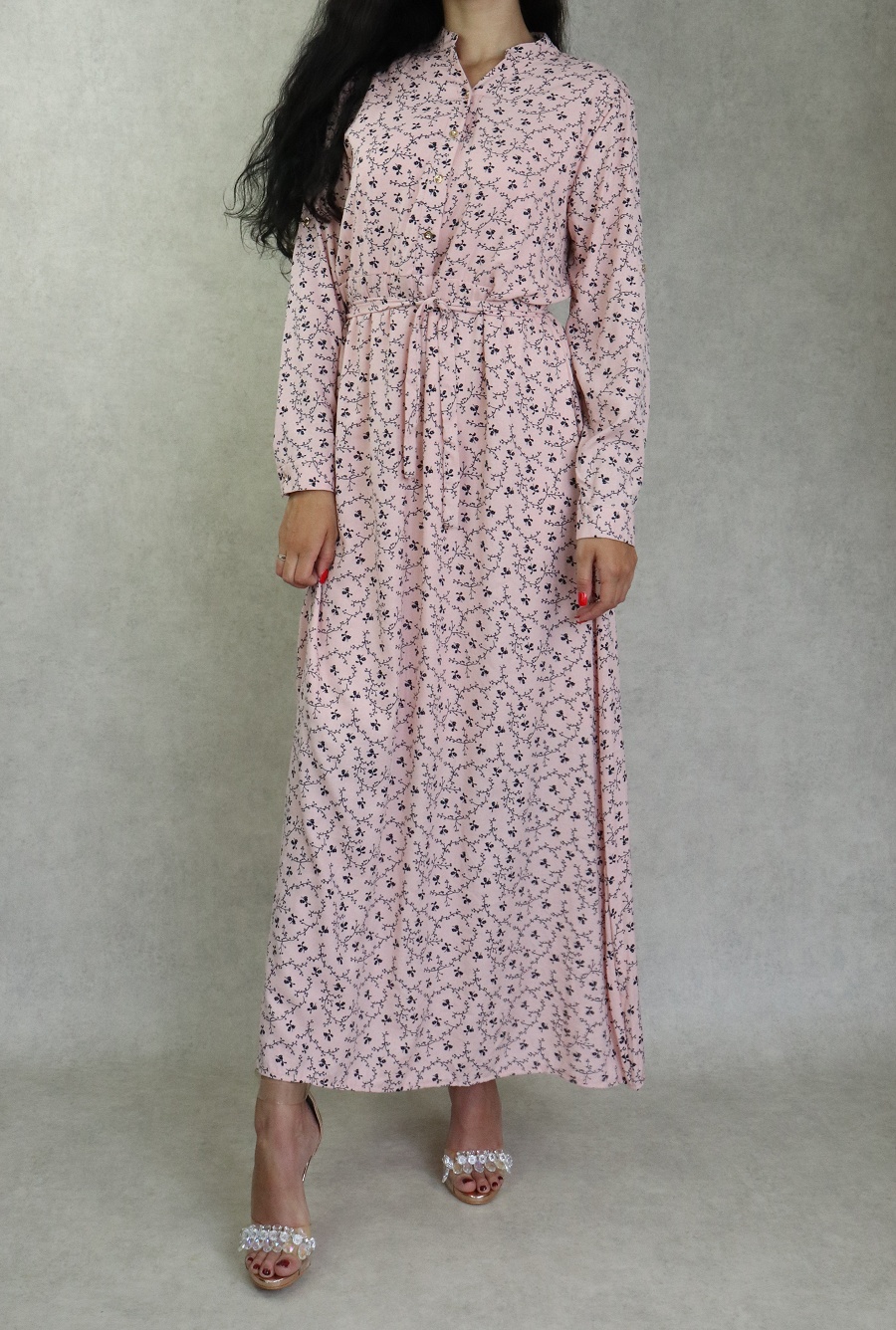 Apportez une touche fleurie à votre penderie avec cette robe rose clair à motif prairie, portez-la avec des sandales pour un look estival réussi.