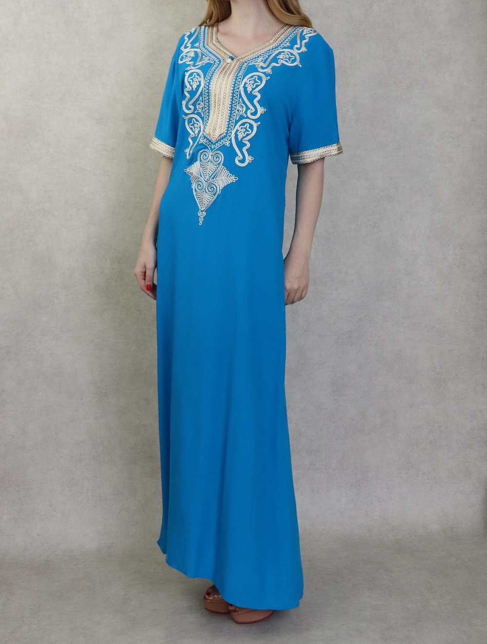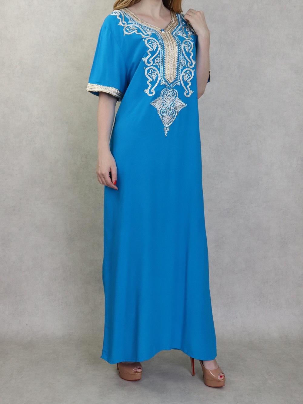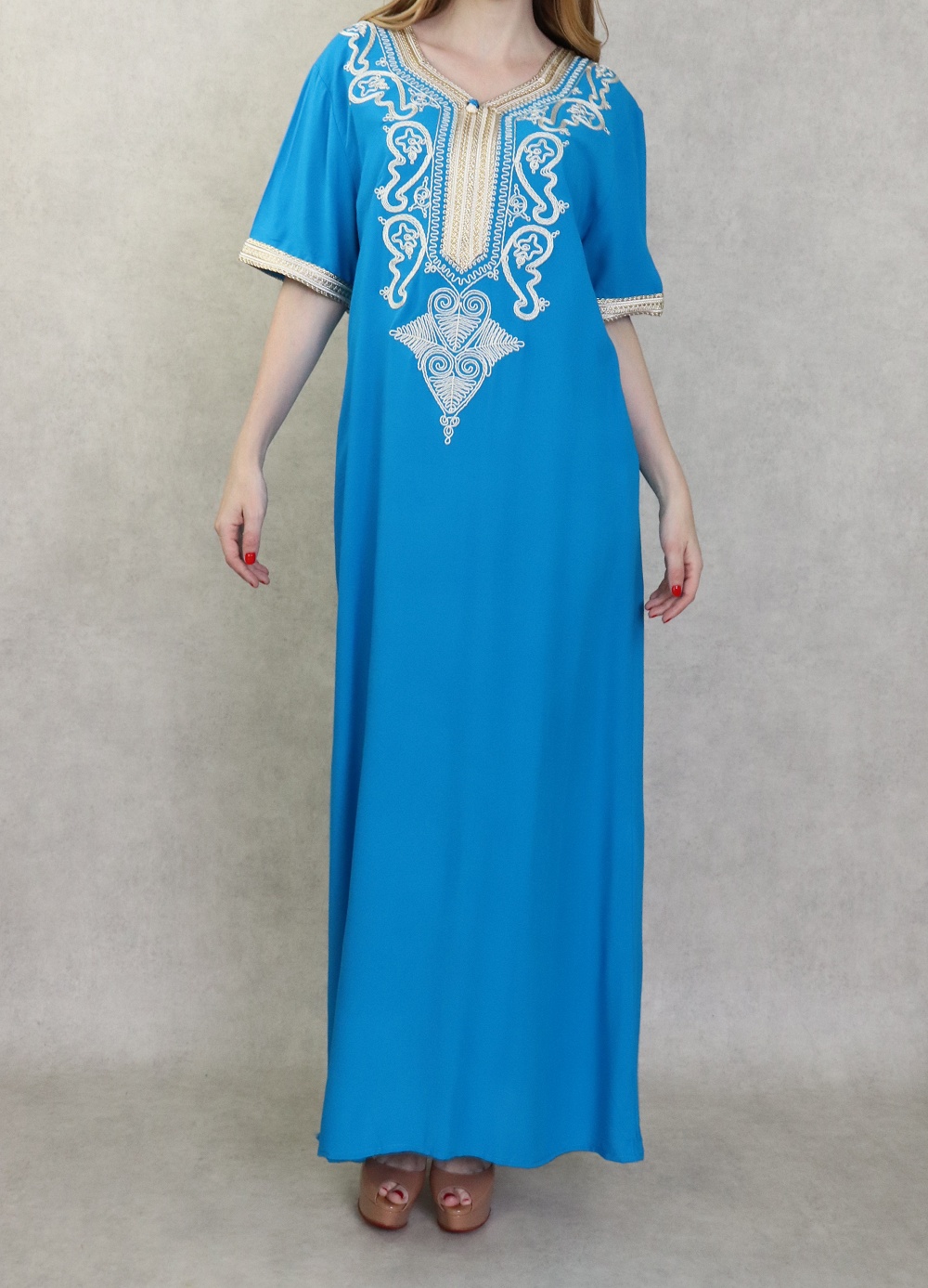 Robe orientale longue à strass et broderies en coton pour femme - Couleur Bleu - REF. 33422 (25.00 €)