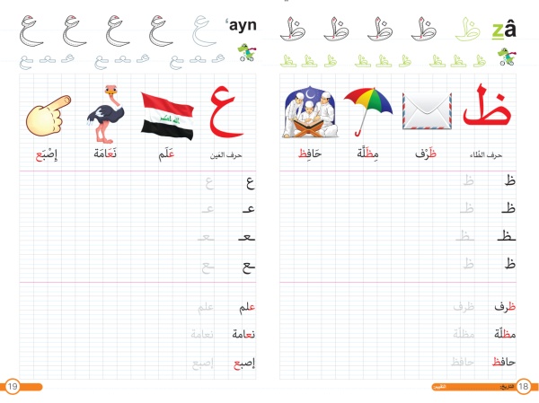 L’aspect esthétique du cahier n’enlève rien à sa précision. En effet, ses pages quadrillées et ses lignes d’écriture espacées, permettront à l’enfant de se familiariser avec les tracés précis de chaque lettre dans toutes ses graphies relatives à ses 4 positions (initiale, médiane, finale et isolée), avec des exemples concrets pour chaque cas, de même que des illustrations, tout en couleurs, pour chaque mot proposé.