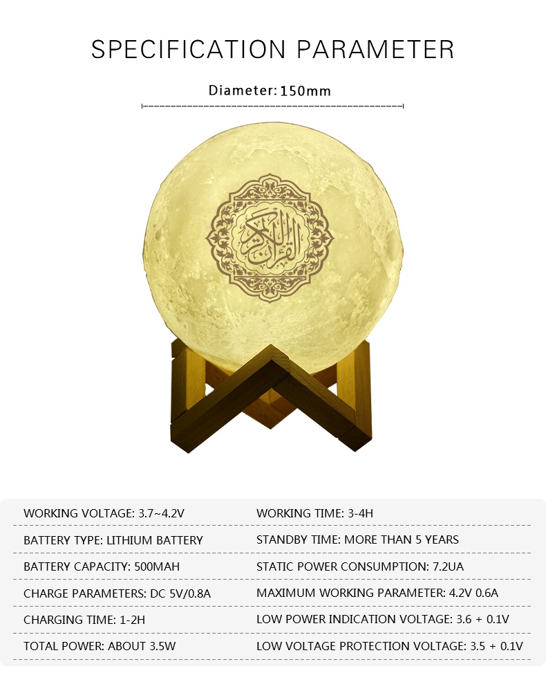 Contient entre autres une traduction Audio du Livre, Traduction Verset par Verset, Traduction mot par mot, Explication Audio Complète, Radio FM, Lecteur Mp3, Selection Rapide De lecture du Livre et une Télécommande rechargeable.