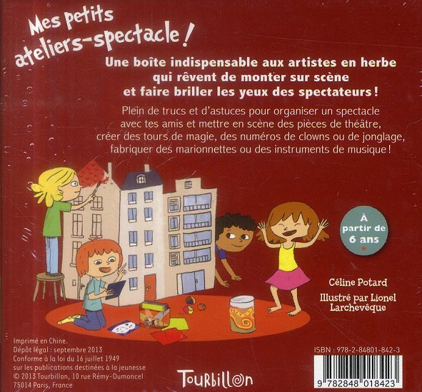 Une boîte indispensable aux artistes en herbe qui rêvent de monter sur scène et faire briller les yeux des spectateurs ! Plein de trucs et d'astuces pour organiser un spectacle avec tes amis et mettre en scène des pièces de théâtre, créer des tours de magie, des numéros de clowns ou de jonglage, fabriquer des marionnettes ou des instruments de musique !