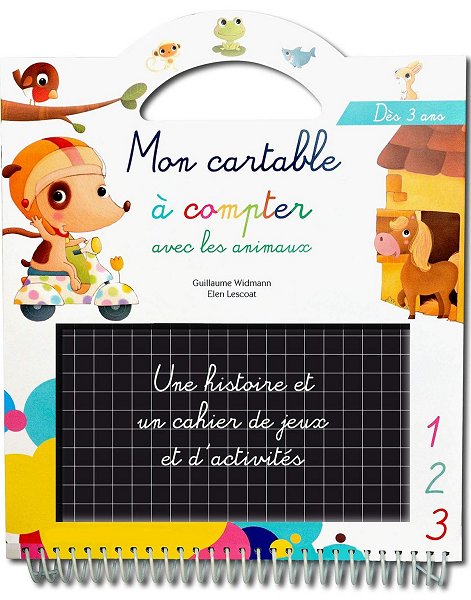 Un album et un livre d'activités pour se familiariser avec les chiffres réunis dans un coffret sous forme de cartable.