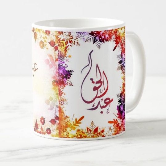 Mug avec le prénom arabe "Abdelhaq" calligraphié en arabe (عبد الحق) de façon artistique par un calligraphe professionnel.