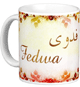 Mug avec le prénom "Céline" écrit en français, en arabe (سلين) et calligraphié de façon artistique en arabe sur la partie droite.