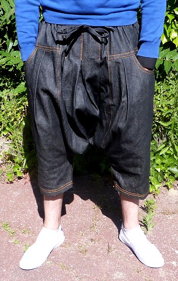 Sarouel pantalon jeans (black Jean) avec ceinture élastique et cordon. Deux grandes poches latérales.