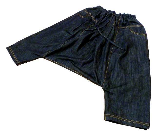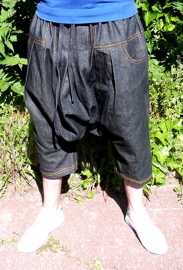 Sarouel pantalon jeans (black Jean) avec ceinture élastique et cordon. Deux grandes poches latérales.