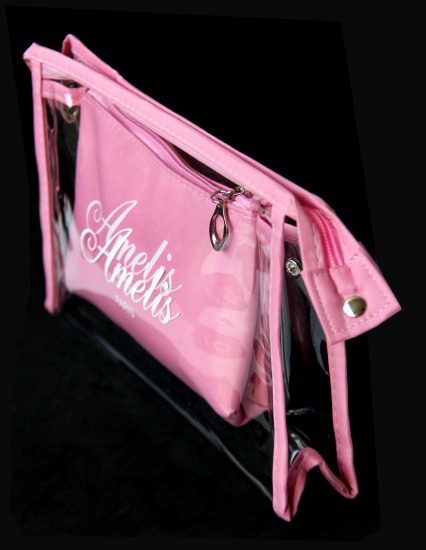 Ensemble de deux trousses de toilette et maquillages assorties spécial produit de beauté et maquillage. Ces trousses assorties sont de couleur rose clair.