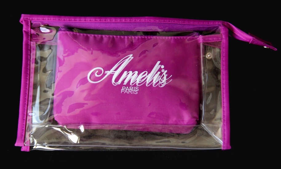 Lot composé d'une trousse de toilette transparente et d'une trousse de maquillage.
