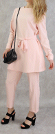 Ensemble tunique, col arrondi, ceinture tissée à passants, manches longues, décoration boutons, finition élastiques aux poignets, assorti de son pantalon taille élastique, coupe droite. Ce modèle est une valeur sûre de confort qui vous assurera un look chic au quotidien.
